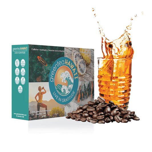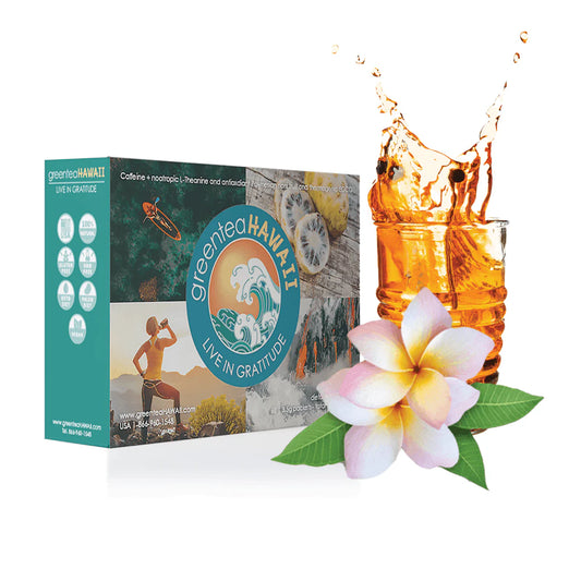 Enjoy sustained energy and the rich flavors of greenteaHAWAII with our 30-count box, perfect for those seeking a steady boost throughout the day. Each sachet is formulated with a blend of green tea extract, L-Theanine, and noni fruit extract, delivering powerful antioxidants and natural energy.